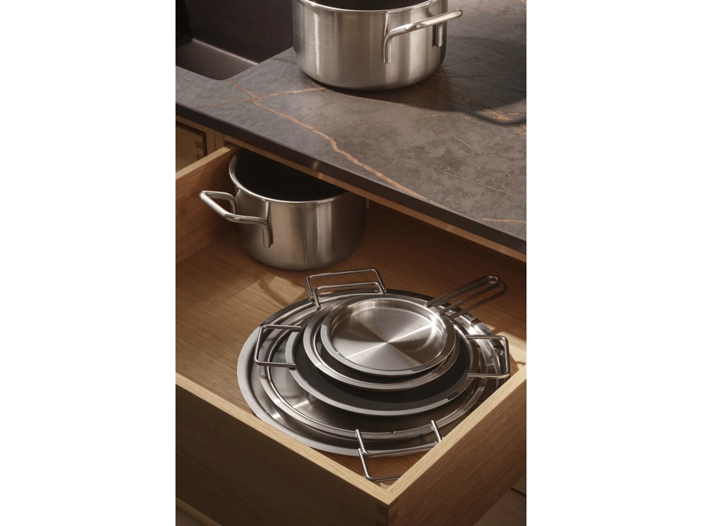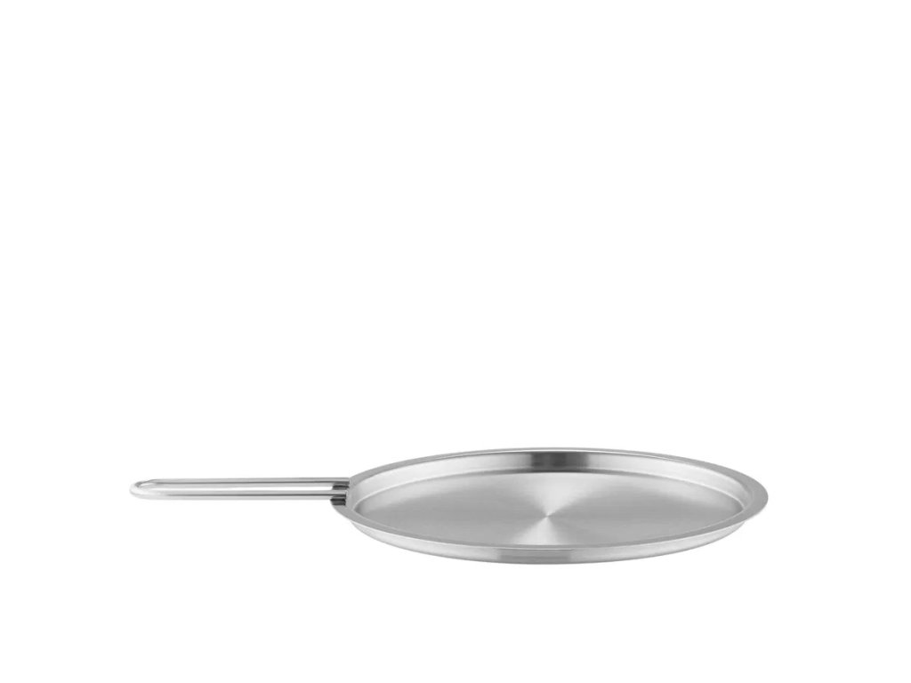| Klíčové vlastnosti: | Plochý design na přihřátí talířů 90 % recyklovaná nerezová ocel Vhodné do trouby i myčky Kompatibilní se všemi hrnci Eva Trio 28 cm |