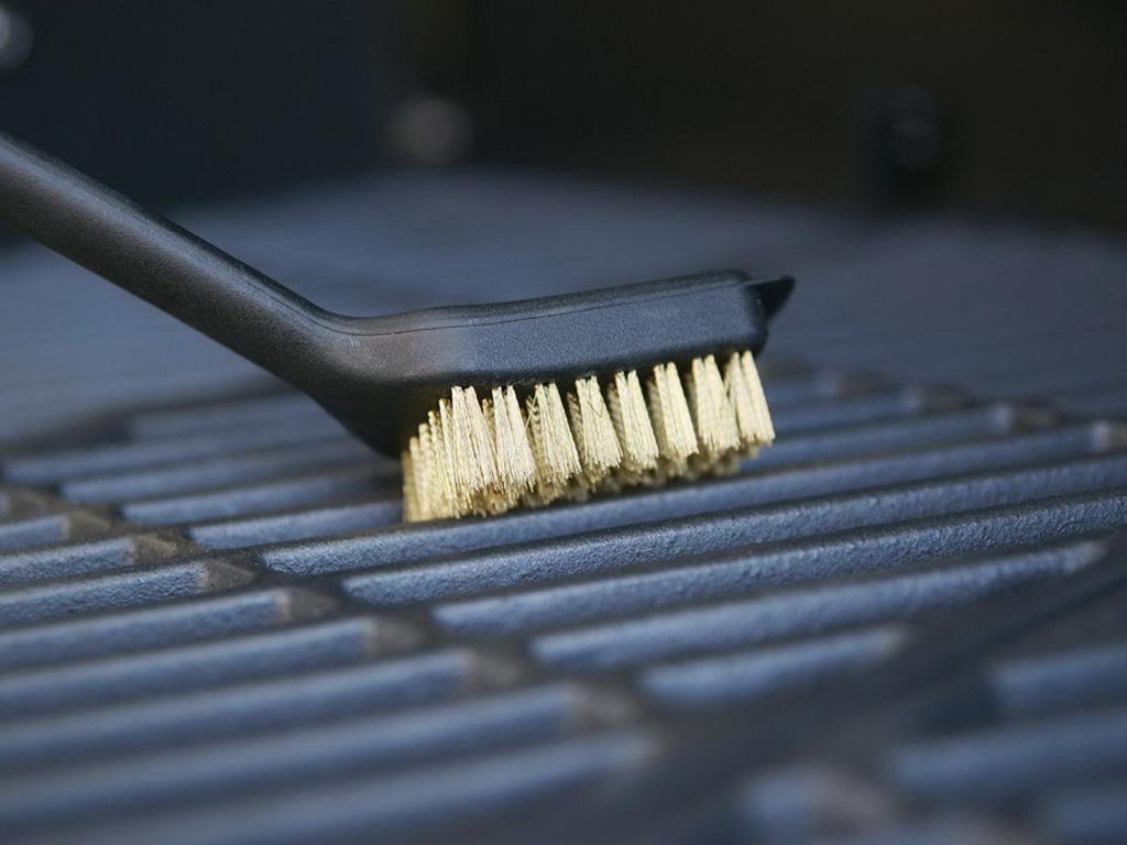 Kefa s dlhými štetinami na dôkladné čistenie grilovacieho roštu.